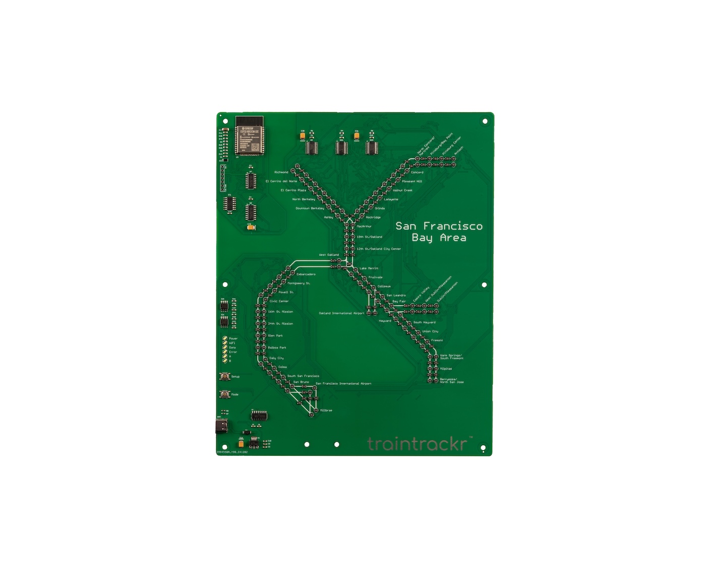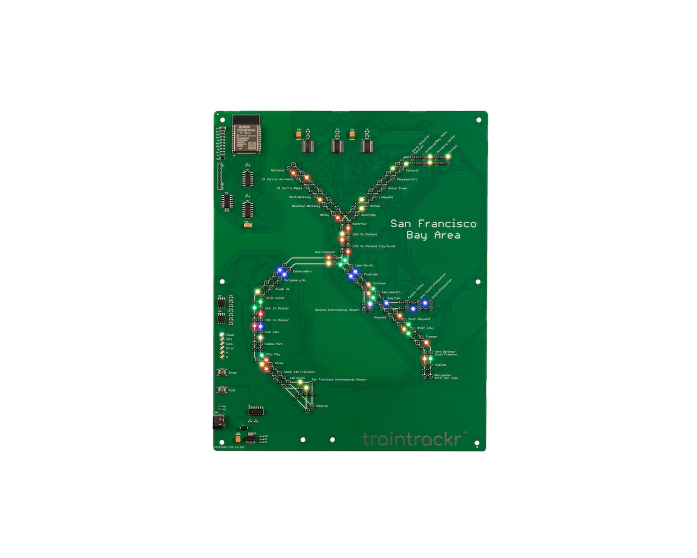 Tracks trains on BART in San Francisco, showing live locations as each vehicle moves around the network.