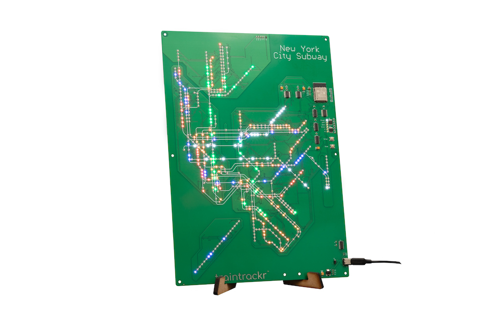 Tracks trains on the MTA in New York City, showing trains arriving in stations live, as each vehicle moves around the network.